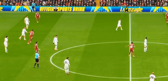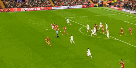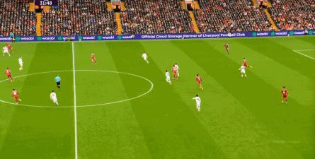包括這次在左路的防推進,布魯諾和達洛特的上前都缺乏力度,芒特則沒有輪轉到底,便讓利物浦打到了底線區域: