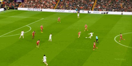 從前到后,利物浦一共嘗試了中鋒伊薩克回撤、中場赫拉芬貝赫脫離庫尼亞、右后衛布拉德利前插、右邊鋒薩拉赫拉邊和前腰索博斯洛伊回撤5種出球可能。