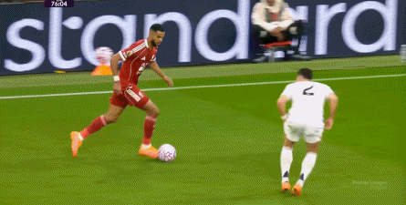 他的第一反應,也是沖擊范戴克的身后,而他的跑位反應和隨后看到姆貝烏莫已經起速后的降速選擇,實際上起到了干擾科納特的判斷的作用,這讓科納特在最后一刻才真正開始加速補防姆貝烏莫。