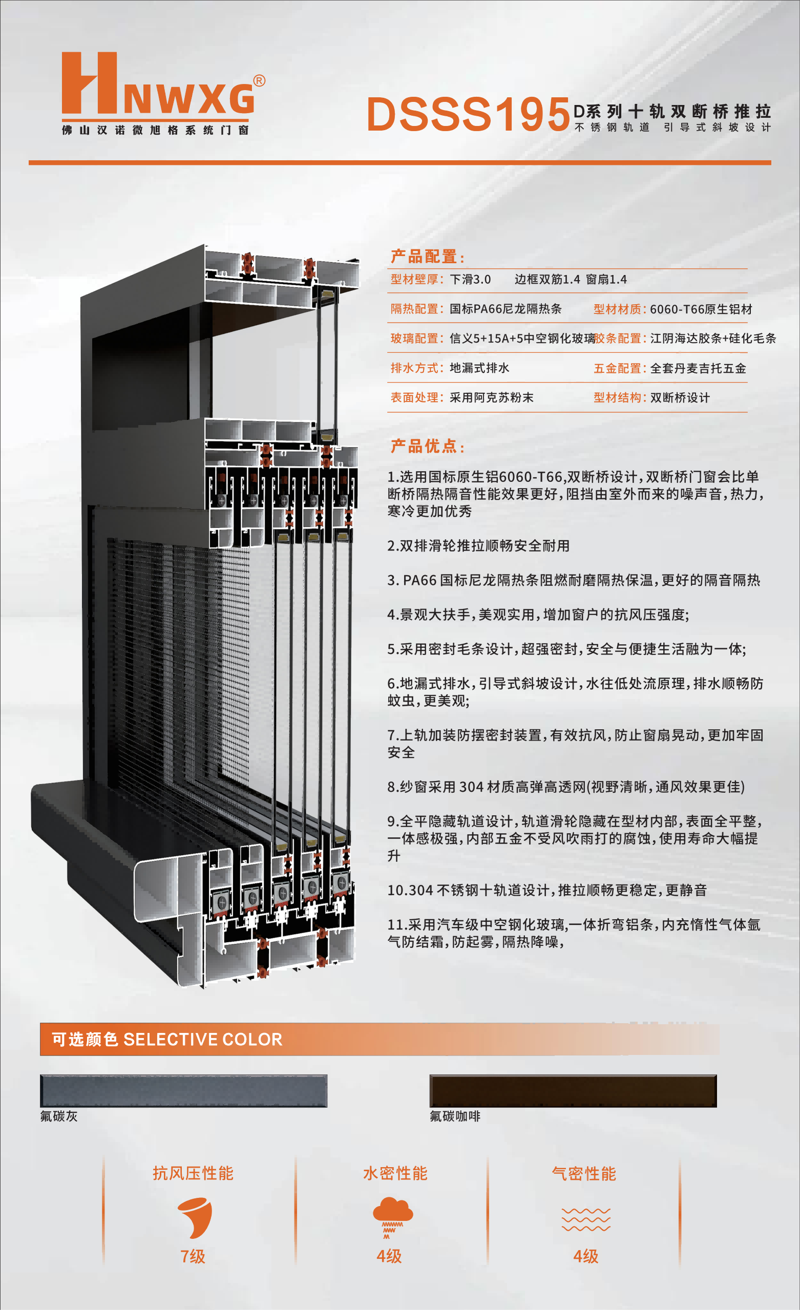 DSSS195 D系列十軌雙斷橋推拉 不銹鋼軌道 引導(dǎo)式斜坡設(shè)計